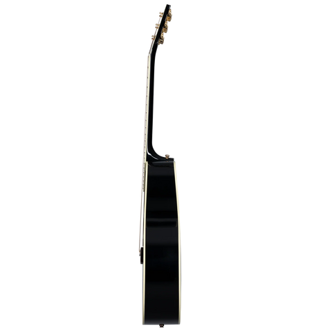 The legacy of Gibson's "King of the Flat-Tops" lives on in the SJ-200 Standard. From its inaugural appearance in 1937, Gibson's SJ-200 set an unmatched standard. The SJ-200 continues a legacy of the world's most famous acoustic guitar, and certainly one of the most popular. The body features flame maple and is finished in Ebony. It comes equipped with gold Grover® Rotomatic® tuners, a TUSQ® nut, saddle, and bridge pins, and it is stage and studio-ready with an internal LR Baggs™ Anthem mic/pickup system. A Gibson hardshell case is included.